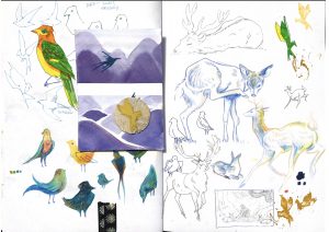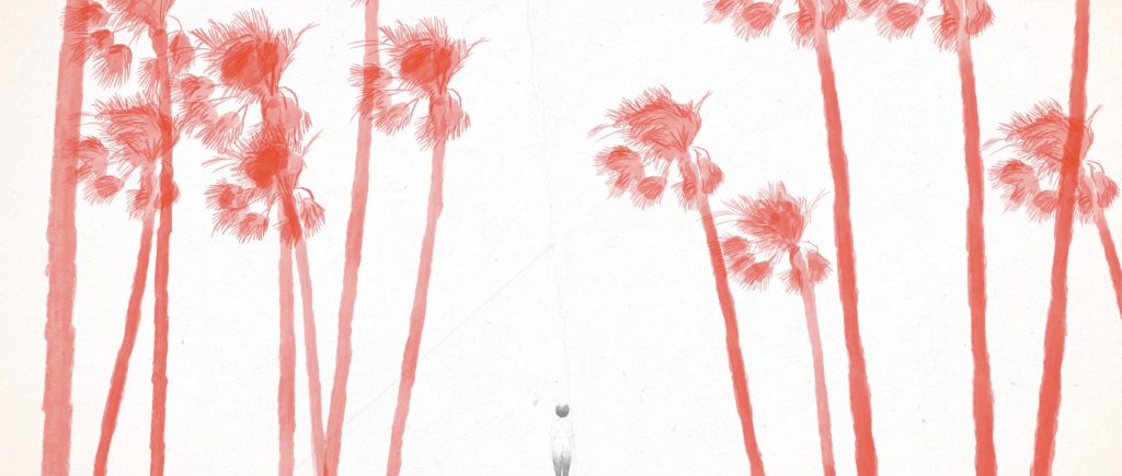 Ashlei was going somewhere new and unfamiliar. She didn’t have a strong sense of identity yet. Her world is stripped back and sparse, drawn in organic linework, creating a sense of formation and discovery.